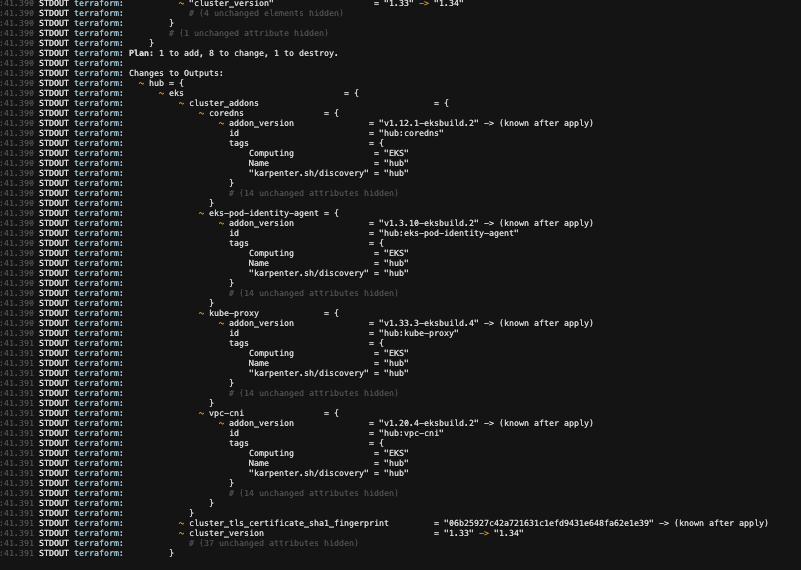 - EKS 1.33 -> 1.34 (Control Plane Update)