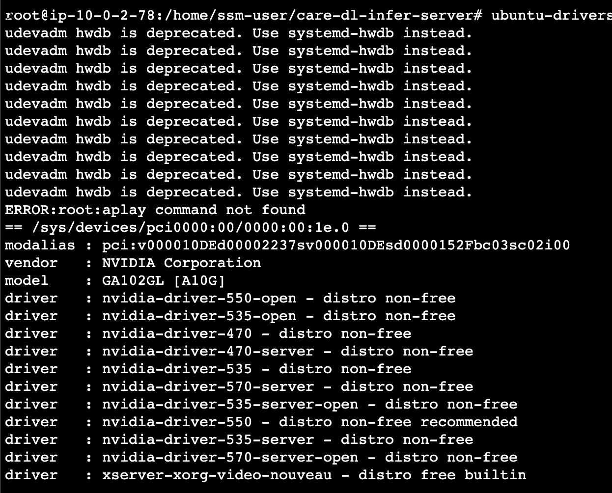 ubuntu-drivers devices를 하게되면 아래 화면이 나타난다.